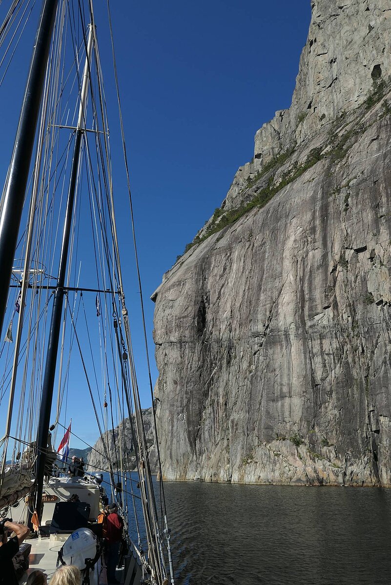 Anfang August 2018 gings vom norwegischen Tananger zunächst auf die Kvitsøy Inseln . In der zweite Etappe segelten wir nach Amøy. Von dort ins Fjordland der norwegischen Küste und schliesslich unter der Brücke durch in den Lysefjord. Unter dem Preikestolen, der höchsten Klippe der Welt gings nach Flørli, unser Ziel im Lysefjord.
