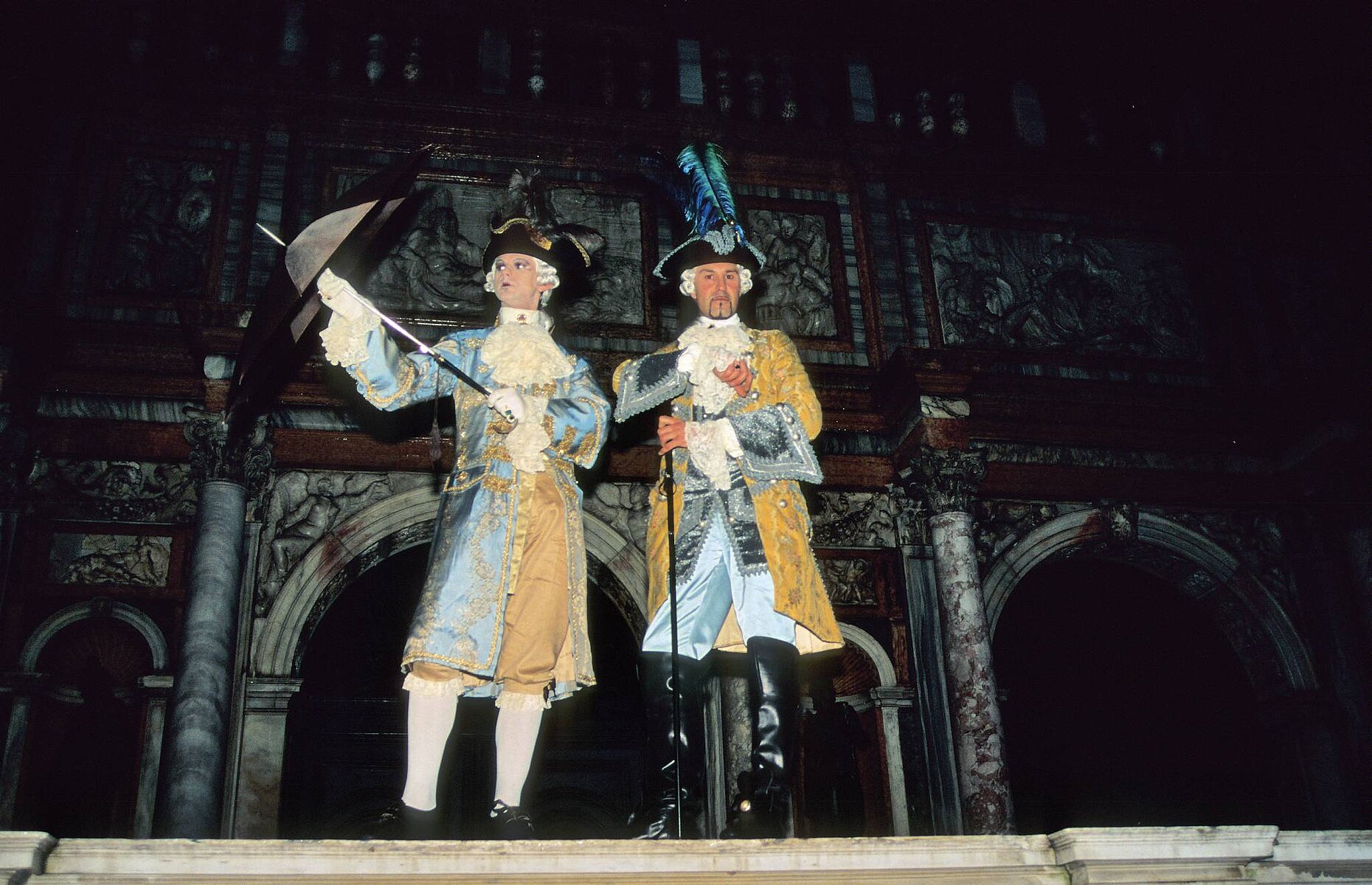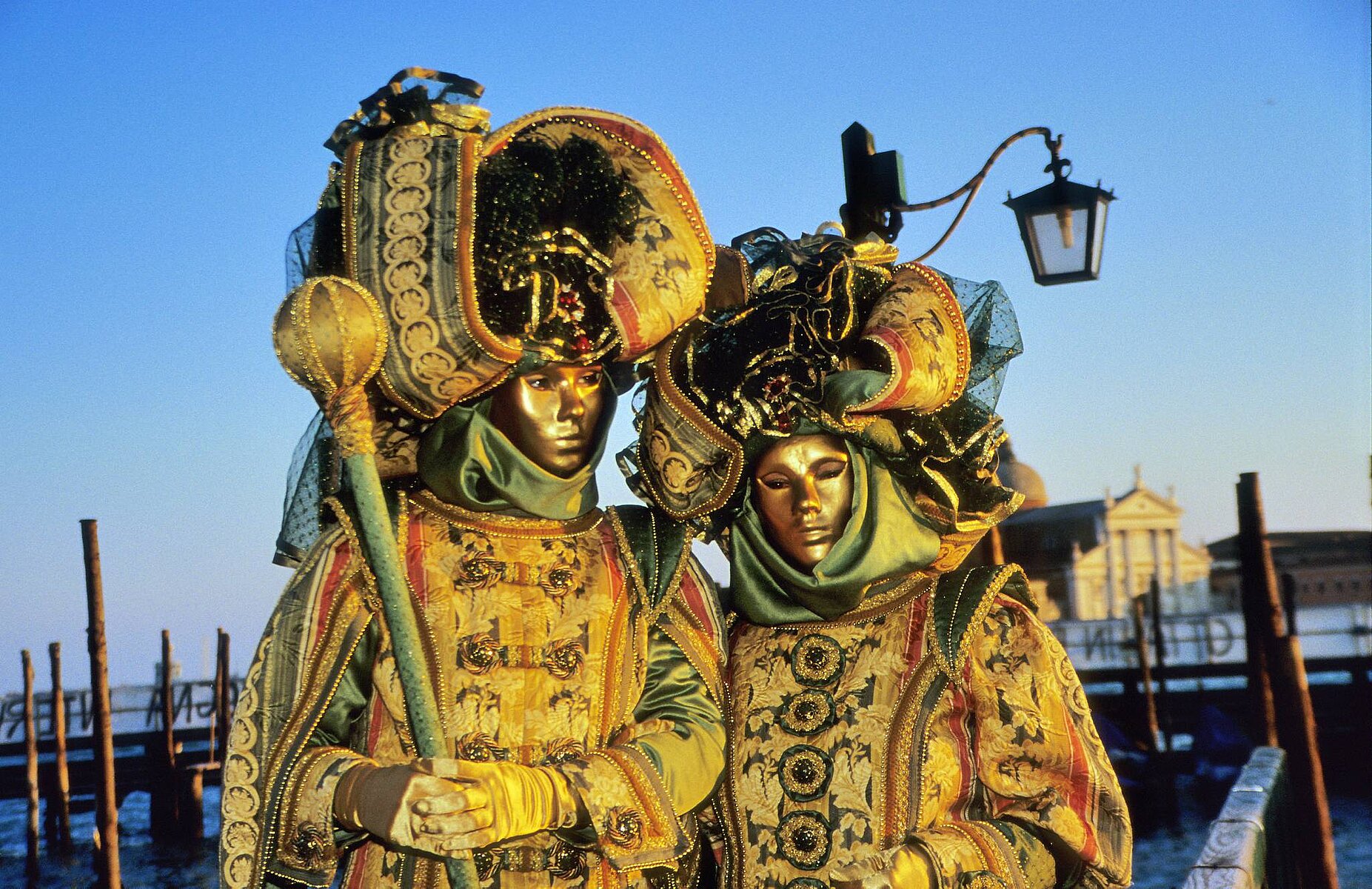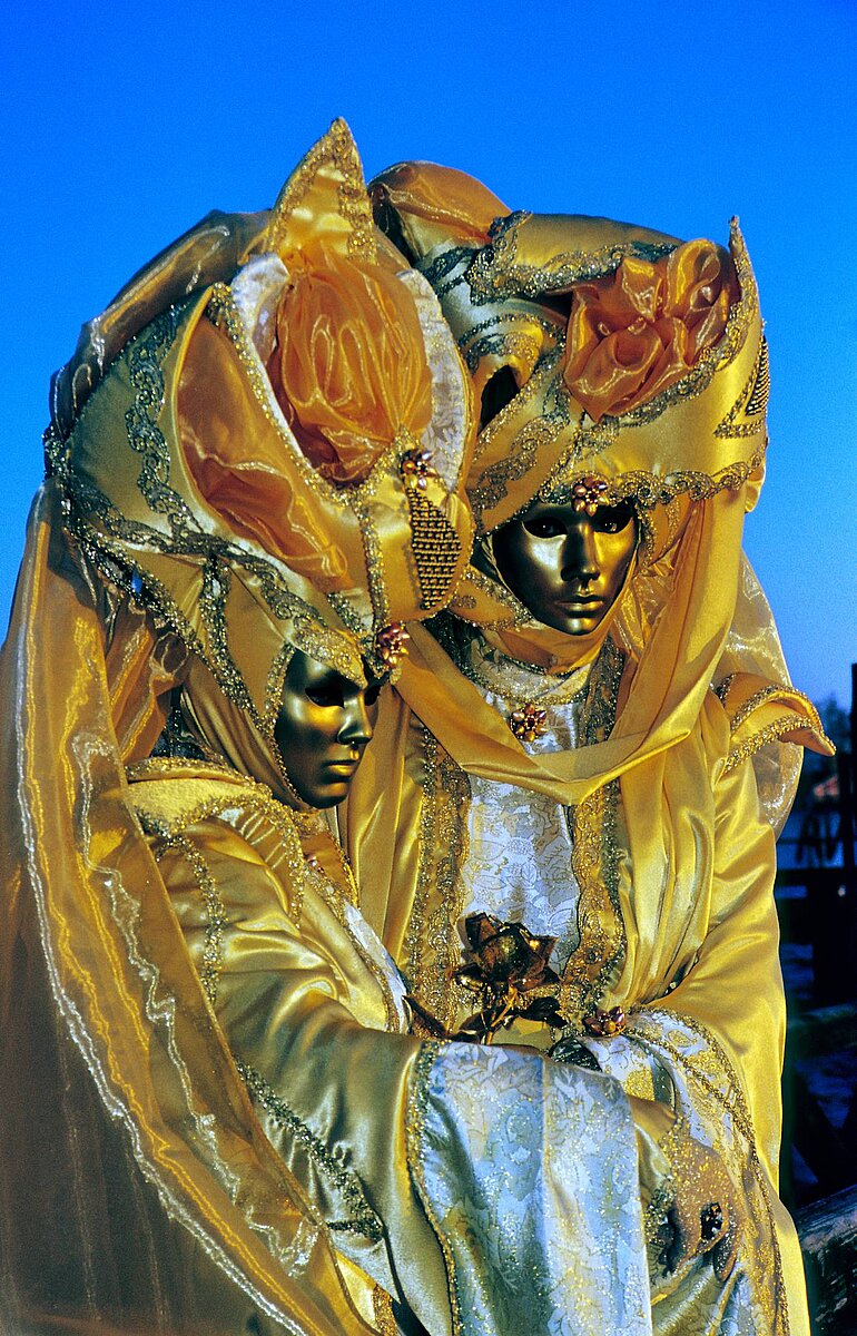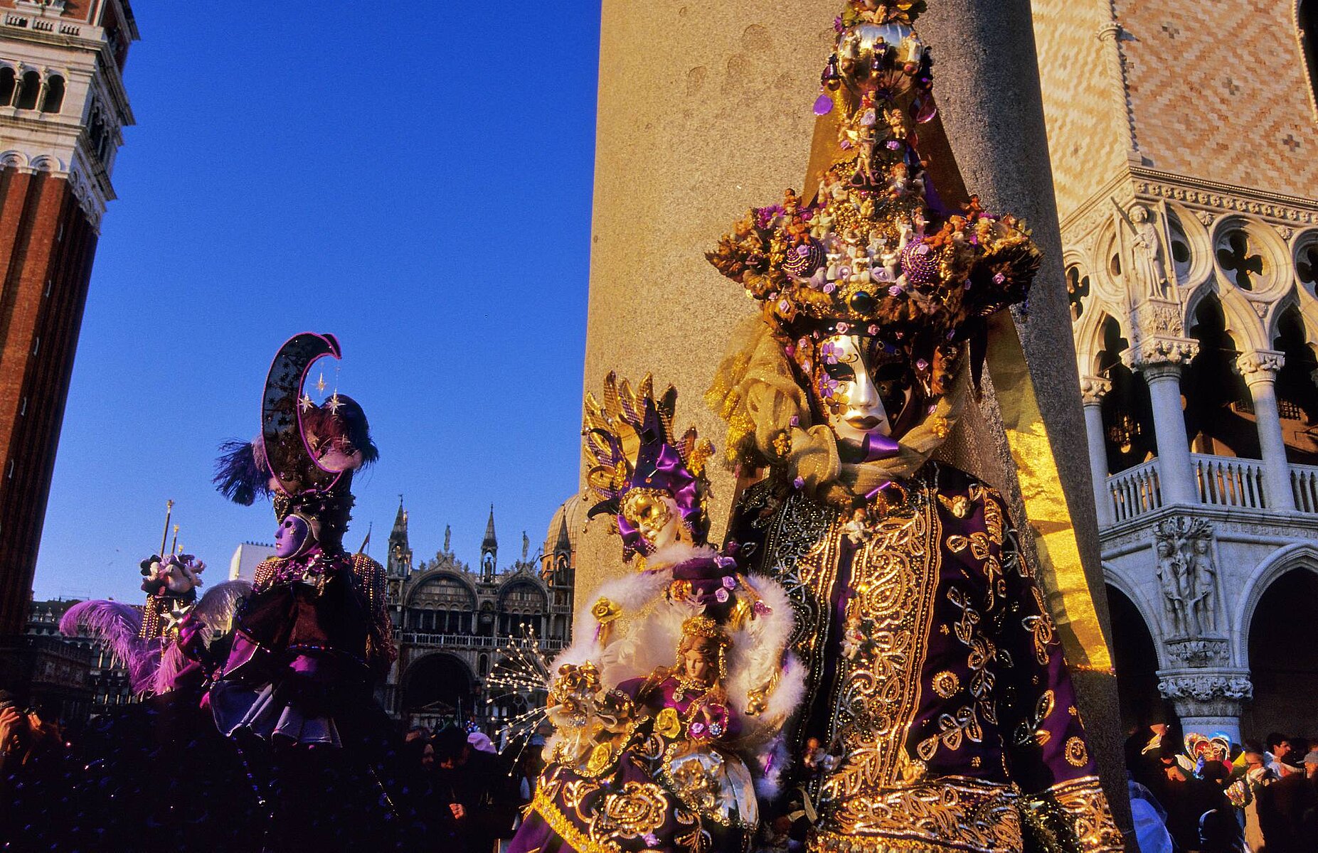 zwei Masken vor dem Campanile