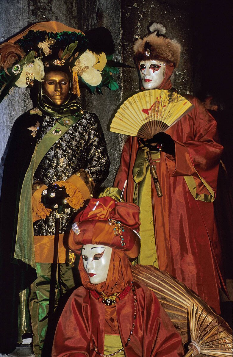 Masken in Schwarz Weiss vor dem Dogenpalast