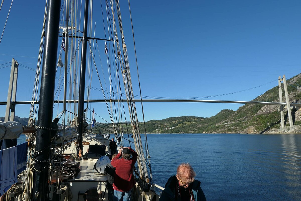 Anfang August 2018 gings vom norwegischen Tananger zunächst auf die Kvitsøy Inseln . In der zweite Etappe segelten wir nach Amøy. Von dort ins Fjordland der norwegischen Küste und schliesslich unter der Brücke durch in den Lysefjord. Unter dem Preikestolen, der höchsten Klippe der Welt gings nach Flørli, unser Ziel im Lysefjord.