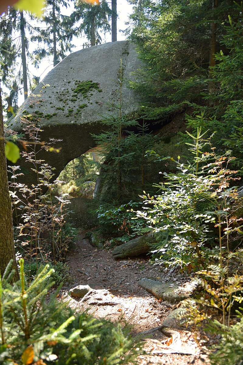 Eingebettet zwischen Fichtelgebirge und Oberpfälzer Wald wölbt sich der über 900 Meter hohe Granitrücken des Steinwaldes zu einem markanten Landschaftsbild der nördlichen Oberpfalz auf. Die geschlossene Waldlandschaft wird von Nadelbäumen, immer wieder mit schönem Mischbestand durchsetzt, geprägt. Aus dem harten Urgestein haben Wind und Wetter steil aufragende, bizarr geformte Felsengruppen genagt: Räuberfelsen, Vogelfelsen, Saubadfelsen und viele andere mehr. Auf der Platte, dem 946 Meter hohen Hauptgipfel des Steinwaldes, wurde der Oberpfalzturm erbaut, der einen weiten Rundblick gewährt. Der Naturpark „Steinwald“ ist der zweitkleinste der 19 Naturparke in Bayern.