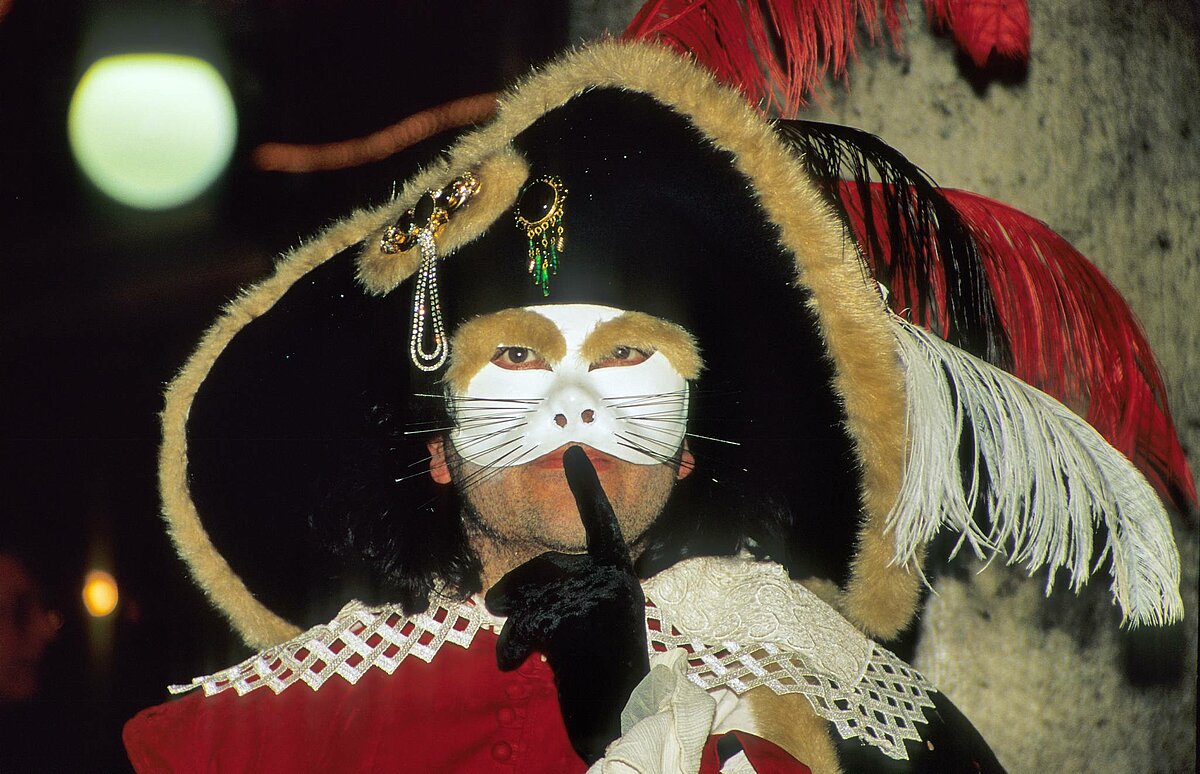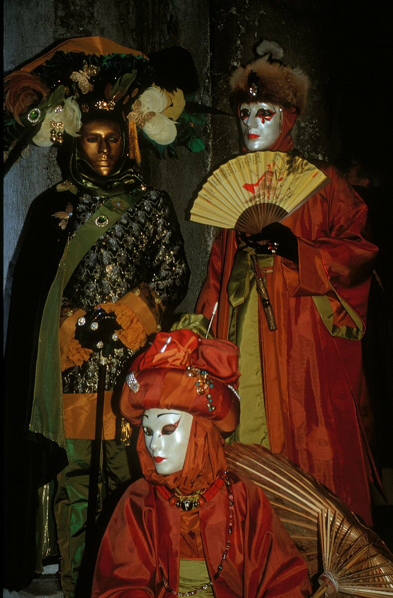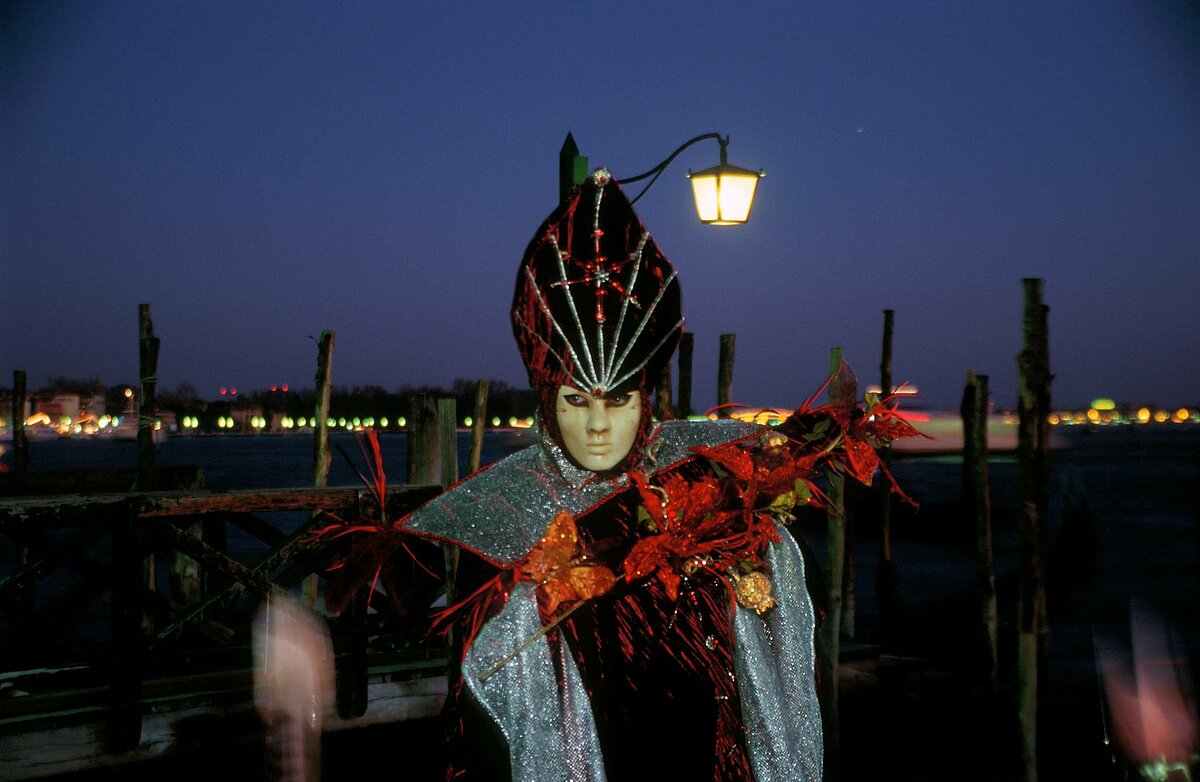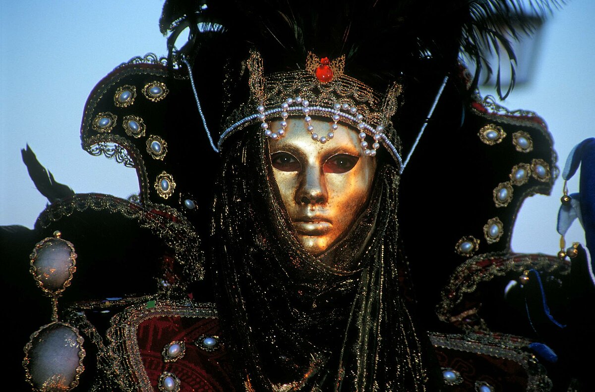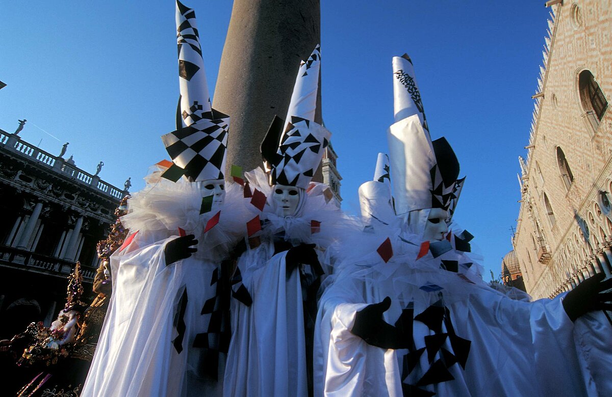 Masken in Schwarz Weiss vor dem Dogenpalast