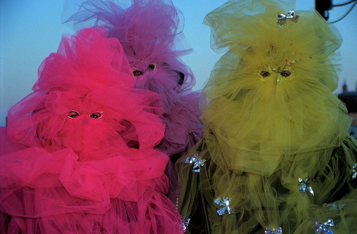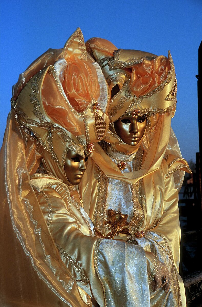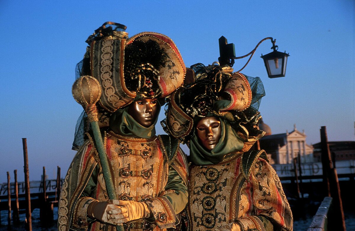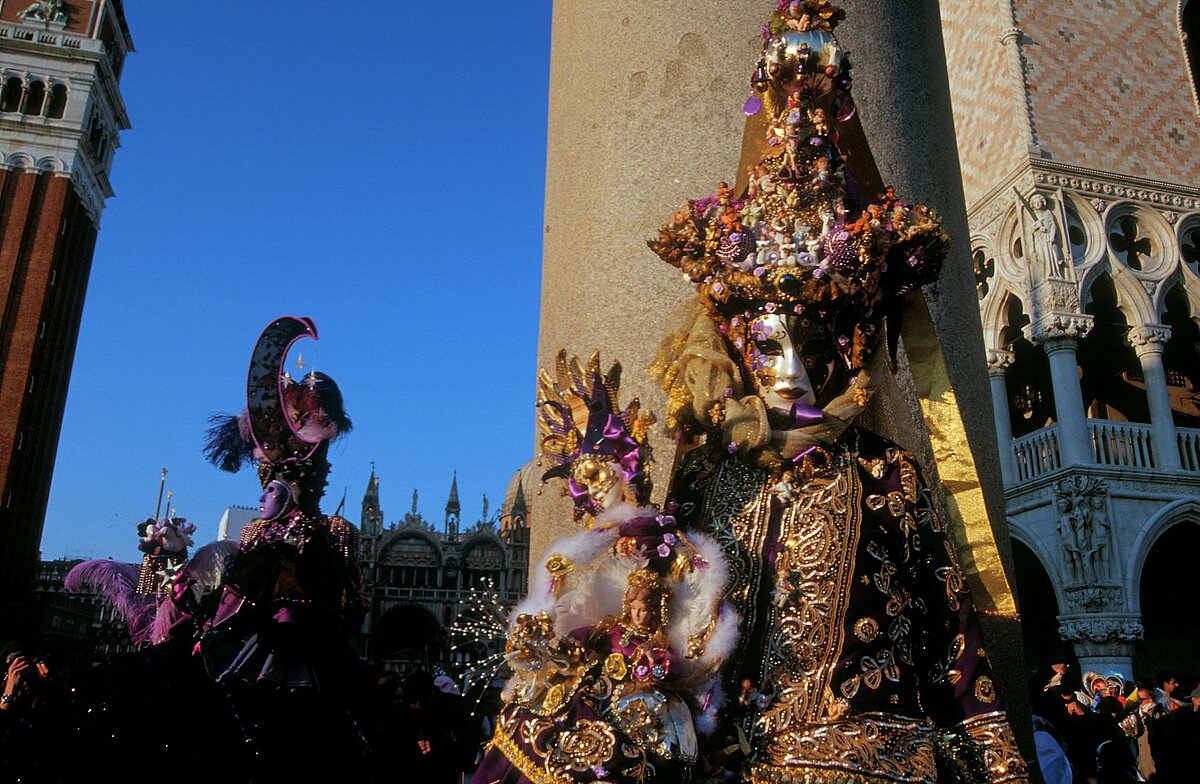 zwei Masken vor dem Campanile